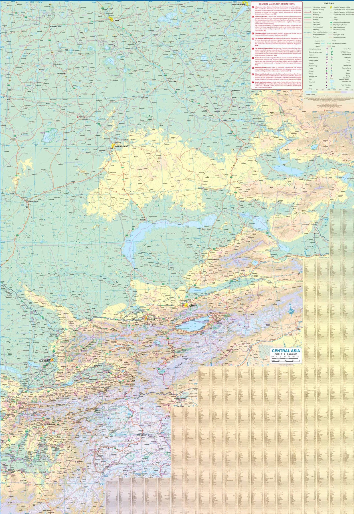 Fra ITM: Central Asia is more or less the five Stans that were taken over by the Russian Bolsheviks in the 1920s and administratively declared by Stalin to be Soviet Republics. With the break-up of the Soviet empire in 1989/90, this became Kazakhstan, Uzbekistan, Turkmenistan, and the other ‘stans’, excluding Afghanistan. This map concentrates on the area as a region, from the Caspian Sea to the Hindu Kush knot of Himalayan mountains and from the Russian border south to the Iranian and Afghan borders.