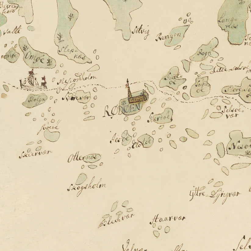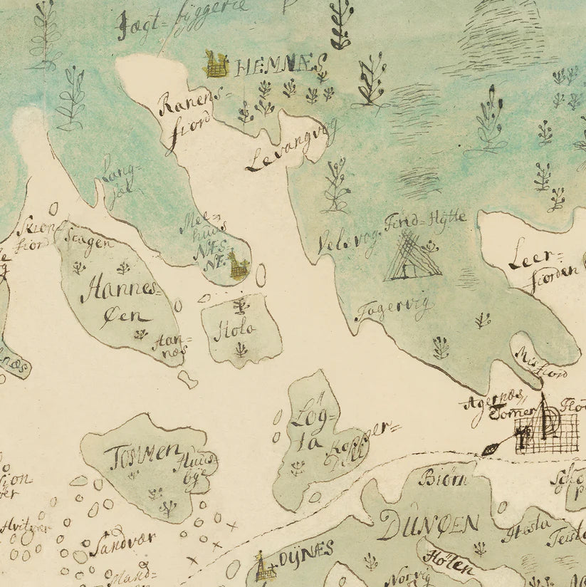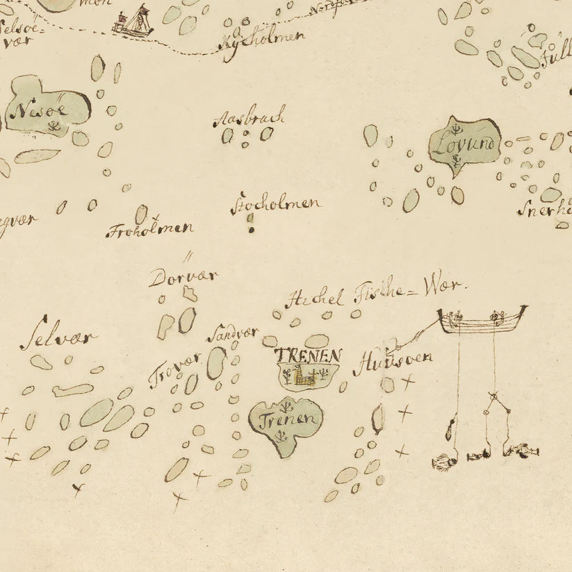 Kartet bar preg av tidens tann, med smuss, misfarging og slitasje i brettene. Etter nøye restaurering har detaljene kommet frem igjen - klare, tydelige og vakre.